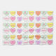 Features an original marker illustration of a row of pastel-coloured candy hearts, each with a fun saying. Perfect for Valentine's Day!