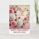 This card has a romantic and artistic arrangement of roses and heart elements. The centerpiece consists of large, detailed roses in shades of white and pink. Their petals are intricately layered, giving a soft and realistic appearance. Surrounding the roses are lush green leaves, adding a natural touch.