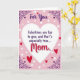 This Valentine's Day card has a soft pastel pink background that feels gentle and warm. At the center is a large white heart, like a big space set aside for a message. Near the top, the words “For You” appear in deep purple, written in a flowing cursive style. Inside the heart, it reads, “Valentines are fun to give, and that’s especially true... Mom.” with “Mom.” standing out in bright red cursive near the end. Smaller hearts float around the main heart in different sizes, mostly white with a few red and tiny purple ones mixed in. Each corner has a dark purple curled decoration that frames the design and gives it a thoughtful, classic touch. It feels meaningful because it’s simple, loving, and clearly meant to make Mom feel appreciated ❤️.