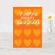 Orange Valentine's day card with a pattern of yellow hearts. Outside verse is "You're simply the best". Inside verse is "Better than all the rest".