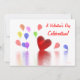 A Valentine's Day invitation with my original design of a red heart and colourful balloons over reflective water.