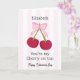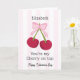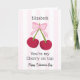 Personalised Valentine's Day card featuring cherry with pink coquette on pink stripes background