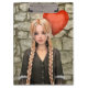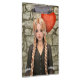 3D digital render of a beautiful teenager girl in a retro dress holding a balloon in a heart form on a stone wall background. Perfect Valentine's Day gift