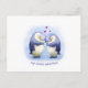 This Valentine's Day postcard features a cute sweet penguin couple reaching for each other's flippers. The picture is hand-drawn in watercolor and is a super cute little gift for Valentine's Day.