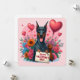 Valentine's day card featuring a Doberman with flowers and a heart shaped balloon.