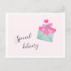 Valentine's day postcard with cute envelope and hearts illustration, and text "Special delivery". Pastel mint and pink colours.