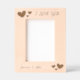 Custom wood etched frame Valentine's day gift for her with hearts. Personalised with the couple's names and a message (I love you in the example).