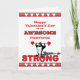 Cute Valentine's Day greeting card for a partner. A muscular penguin is lifting heart weights and a shadow is cast behind it. Happy Valentine's Day to an Awesome Partner, text on the cover. Penguin element thanks to HGomez/Openclipart. Art, image, and verse copyright © Shoaff Ballanger Studios.
