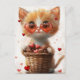 Valentine's Day Ginger Cat Basket Hearts Postcard