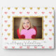 A modern and trendy gold and pink glitter hearts illustration pattern with lovely Typography Script letters "Happy Valentine's Day". Easily to change the sample photo with your own one.