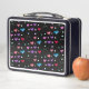 This is a standard metal lunchbox that appears to work just fine. We designed this box ourselves with an uploaded photo and custom text on the front and back. It looks absolutely beautiful except the front of the lunchbox is not centered like it shows in the photo. The print borders don't align with the inset flat part of the box where the preview photo online showed it perfectly centered in there. The back looks nice and centered though.