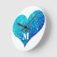 Valentine's Day Heart Monogram Blue Glitter Cute Round Clock