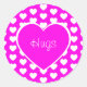 Hugs Valentine's Day Hearts Sticker, with purple and white hearts and white customisable lettering. A lovely way to add a little extra to that special Valentine's Day gift.