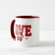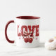 This romantic Knitted Love Womens mug showcases bold red yarn-style lettering spelling LOVE, beautifully tied with a soft bow and finished with cozy knitted heart details. Designed on a sky color background with vibrant red and blush tones, this Knitted Love Womens mug captures warmth, affection, and the heartfelt emotions.