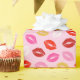 Valentine's Day Lips. Red, pink, gold and white on light pink background