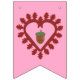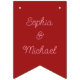 This awesome bunting features a digital art image of an acorn surrounded by a red heart. The acorn is brown with a green cap and cute little eyes with black pupils and a smile on its face. the heart surrounding the acorn has a series of pretty red oak leaves attached to it pointing outside the heart creating a beautiful leafy pattern. There is custom text so you can include the names of the happy couple. This bunting is perfect for wedding celebrations also great for Valentines Day and Wedding Anniversaries.
