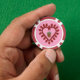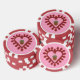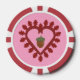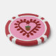 This awesome set of poker chips features a digital art image of an acorn surrounded by a red heart. The acorn is brown with a green cap and cute little eyes with black pupils and a smile on its face. the heart surrounding the acorn has a series of pretty red oak leaves attached to it pointing outside the heart creating a beautiful leafy pattern.
