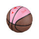 This awesome basketball features a digital art image of a cute axolotl, a Mexican Salamander, holding a red heart. The Axolotl is pale pink with huge black eyes and a big pink smile. It has bright pink feathery gills on the side of its head and a bright pink plume on its tail. There is pink text inside the heart that reads Love You a Lotl. There is custom text so you can include names.