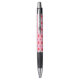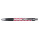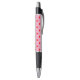This awesome patterned pen features a digital art image of a cute axolotl, a Mexican Salamander, holding a red heart. The Axolotl is pale pink with huge black eyes and a big pink smile. It has bright pink feathery gills on the side of its head and a bright pink plume on its tail.