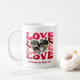 Celebrate love this Valentine's Day with a custom mug featuring the word "Love" in red tones and a heart design showcasing your favourite photo. Add a personal touch by including the couple's names for a meaningful gift for a girlfriend or wife.
