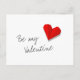 Minimalist style love postcard with cute red heart origami illustration and text "Be my Valentine".