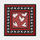 Valentine's Day magnet in red, black, white, and pink has a border of x's and o's around hearts.
