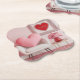 This is a pretty pink MCM Art Valentine's Day Coaster Set. The Valentine design was created with generative art. The art style is Mid Century Modern. The art features a digital photo of a room with a pink heart shaped pillow in a white chair, pink flowers in a red vase, the word Love in a red and silver heart in a silver frame on the wall, a pink wall and a pink carpet. The coaster is a bracket shaped paper board coaster. There are 6 coasters in the set.