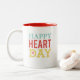 A Galentines mug with the phrase, "Happy Heart Day" in 3 different fonts. A happy mug to fill with chocolate for a friend gift for Valentine's Day.