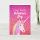 Valentine's Day Pink Glitter Unicorn Kids Holiday Card