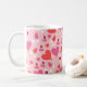 Valentine's Day Pink Red Heart Balloons Pattern on a white coffee mug, beverage cup.