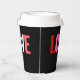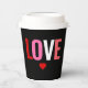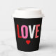 Enjoy your hot beverage with these Valentines Day Red Heart Love Coffee Paper Cups. The cups are modern simple designed with the word "LOVE" in large bold block lettering in colours of red, pink, white and coral around customisable black background. A small red heart is below the text. Available with lid or without.