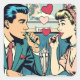 Valentine's Day stickers. Cute retro couple drinking milkshakes at a diner surrounded by pop art hearts done in a comic book style.