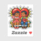 A sweet vintage style retro boy and girl holding hands holding lollipops and chocolates Valentine's Day stickers. Cute for sealing Valentine's Day cards or goodie bags. Little African-American couple.