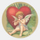 A very cute vintage Valentine's day illustration makes a delightful sticker or envelope seal. Cupid is sitting on the ground resting against a huge red heart and playing a flute. Very cute.