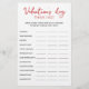 Purchase this game and enjoy high quality Valentine's day Think Fast card for your party! Red hearts design.