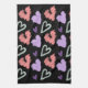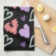Valentines Hearts Purple Hand Drawn Pattern Tea Towel