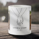 Cute couple valentines day mug featuring a line drawing of a couple holding hands, 2 photos for you to replace with your own, the couples names, and the year established.