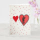 This greeting card shows an off-white background sprinkled with small red polka dots that feel like confetti. On the left, there’s a simple solid red heart that looks like a neat paper cutout with a tiny bit of depth. On the right, a larger red heart is outlined with a fine black lace-like edge, giving it a slightly old-fashioned touch. Inside that heart, a black silhouette shows a couple holding each other close, almost like they’re dancing, and you can spot the woman’s high heels. Their faces aren’t detailed, but their body language clearly reads as tender and close. There’s no text on the front, so the picture does all the talking and leaves room for your own words ❤️. It feels meaningful to give because it balances sweet simplicity with a clear picture of being together 🥰, making it easy to share Valentine’s Day sentiments.