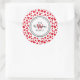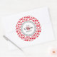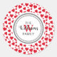 Show your love with these Valentines Red Hearts Monogrammed Name Classic Round Stickers. Each sticker is designed with red heart doodles pattern on white customisable background. The centre has monogram and family's last name in calligraphy script lettering on white and grey round bordered frame.