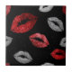 Valentines Red Silver Glitter Lips on Black Ceramic Tile