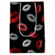 Valentines Red Silver Glitter Lips on Black Medium Gift Bag