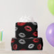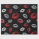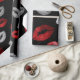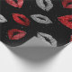 Valentines Red Silver Glitter Lips on Black Wrapping Paper