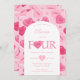 Designed in soft light and medium pink tones, this playful invitation features a charming candy-inspired aesthetic that’s perfect for a fun and love-filled fourth birthday celebration. With its sweet Valentine-style look and cheerful colors, it’s ideal for little ones who love all things cute and colorful.