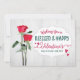 Cute hand lettering style design features this message in white vintage frame, "Wishing you a blessed and happy Valentine's full of peace and joy." Design is accented with beautiful red roses on white wood background. Back has this fully editable message, "Hope your Valentine’s Day brings you happy thoughts, good times and lots of love!" Red Heart accents (can be removed or adjusted for colour).