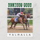 Horse racing's greatest moment when two amazing thoroughbreds with their rippling muscles battle to the finish line in a photo finish noses apart at historic Belmont Park. In this race, Valhalla on the outside with jockey Manuel Franco, got the win in tred and white diamond silks.