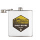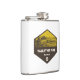 The flask itself is fine. It’s a cheap flask, obviously bought in bulk, however am prepared to overlook that. Given that it is a personalized item, I would have liked to have seen gift boxing instead of the generic packaging. Terrible printing, and/or quality. It’s a cheap, tacky vinyl. It is not cut straight and is also applied in a way that it is overhanging the bottom, causing the glue to catch on items and it will eventually roll and tear, damaging the wrap.