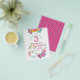 A great value alternative WITHOUT ENVELOPES at SMALLER size 4.5” x 5.6” and at a budget price. (Standard A6 envelopes are the nearest size to fit). A cute unicorn themed design for your little girl's 3rd Birthday Party, along with colourful simplistic florals in shades of pink, teal and yellow. All of the text can be easily personalised to your own details. On the back, the background is pink to coordinate with the pink on the front with a pattern of teal stars. You can make further changes if you wish via the customise further option, to font styles and colours, and also the background colours.