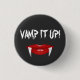 "Vamp it up!" fun slogan Halloween button with big bright red lips and fangs image.