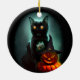 Vampire Cat and Wizard Pumpkin Halloween Surreal Ceramic Ornament