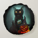 Vampire Cat and Wizard Pumpkin Halloween Surreal Round Cushion